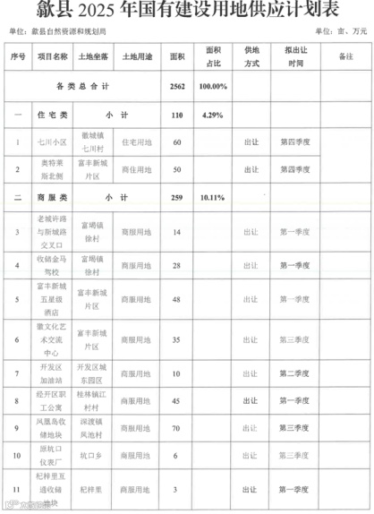 歙县发布2025年土地供应计划!2562亩土地重点保障民生基建与文旅产业