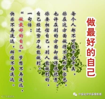 事实证明,我们每个人都可以做一个最好的自己,都可以做到优秀。我们更不必为自己赶不上别人而太过自责,也不必因为境遇不好而太过感伤,怨天忧人。我们所需要做的,是追随自己心灵的选择,不求其他,但求做最好的自己。