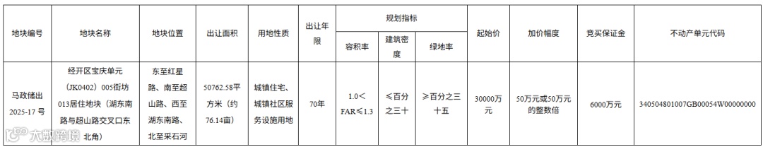 本次出让加价幅度:50万元或50万元的整数倍。竞价时限为每轮2分钟。