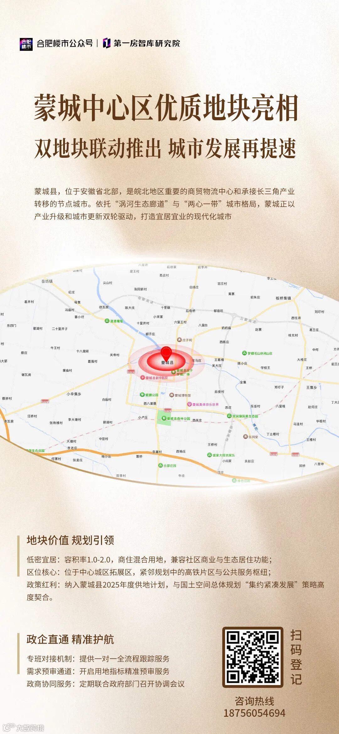 蒙城此次土地供应释放出三大积极信号:一是空间战略加速落地,西南片区与开发区的产城联动将推动“九区协同”布局从蓝图走向现实;二是改善型住房需求迎破解契机,当前蒙城改善型住房占比不足30%,低容积率地块入市有望引领产品升级;三是政策红利持续释放,在交通升级与产业集聚双重驱动下,蒙城在皖北城镇群中的节点城市地位将进一步凸显。建议投资者关注蒙城在产城融合、城市更新领域的结构性机遇,尤其是配套成熟、交通便利的优质地块。