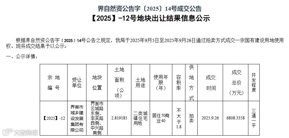 本次地块成交是界首市国土空间规划与年度供地计划有效落地的缩影,反映出城市在发展节奏上的科学把控与市场信心的稳步提升。从住宅用地供应到产业人口集聚,从基础设施投入到生态宜居建设,界首正以系统思维推动城市能级全面提升。