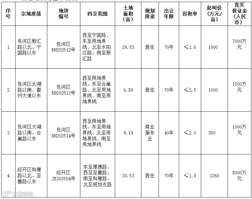 3、含包河区包河区BH202512号、包河区BH202513号、包河区BH202514号地块在内的3宗土地(水阳江路与宁国路交口东南角地块、徽州大道与太湖路交口东南角地块、太湖路与合巢路交口东南角地块)按合肥市政府批准的卫岗王卫片区低效用地再开发城市更新项目统一规划,本批次出让须组合供应、整体出让、统一报名、统一竞得。竞买人在办理竞买登记手续时,须提交已充分了解卫岗王卫片区低效用地再开发城市更新项目总体情况及实施要求的书面材料。