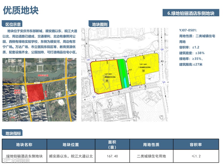 绿地铂骊酒店东侧地块:康熙河生态廊道与皖江大道交汇处,坐拥顺安河270°水岸线,规划容积率≤1.2,依托苏宁广场+万达商圈,定义滨水豪宅新标准。