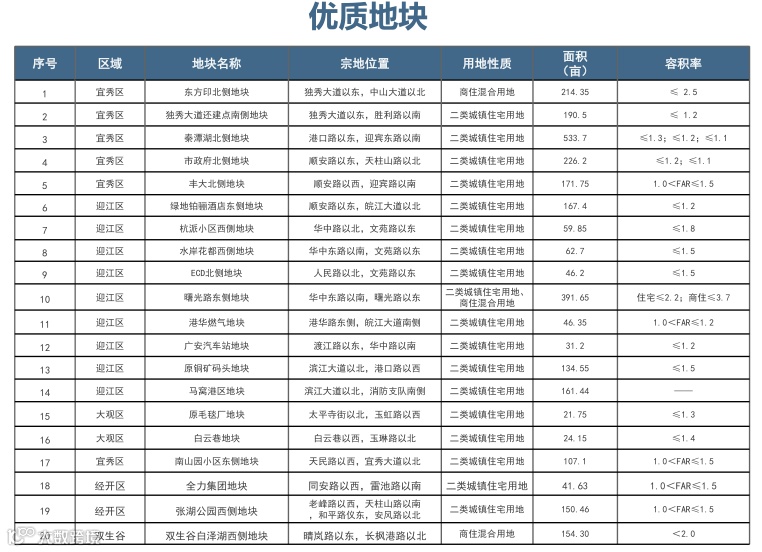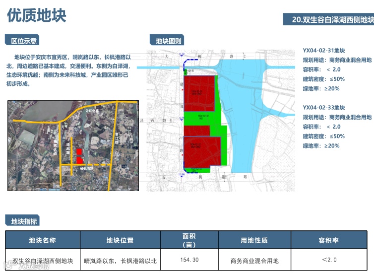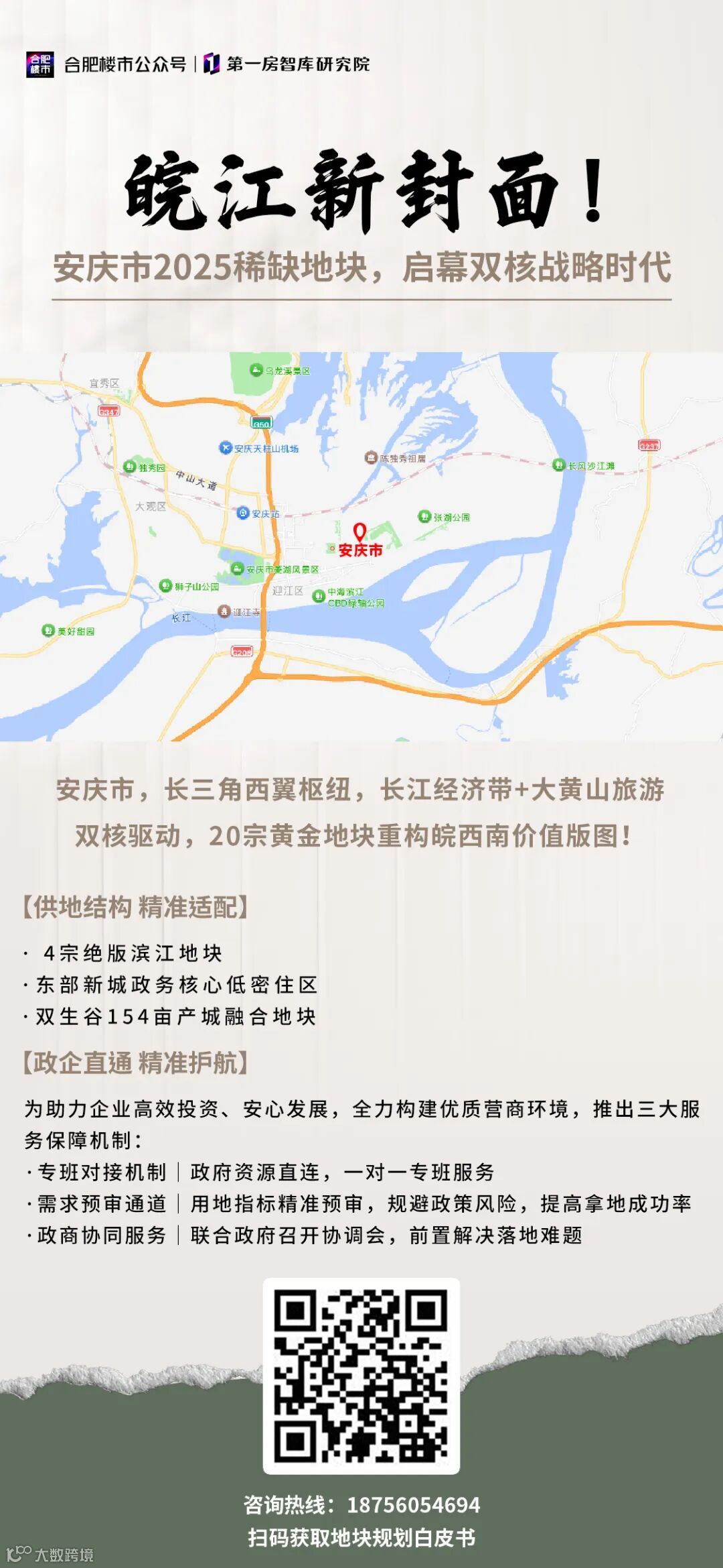 安庆土地价值正迎来历史性重构。长江岸线50米生态红线被划入“生态保护区”,现存4宗滨江地块(如原铜矿码头、马窝港区地块)成为绝版江景资产;20宗推介地块中13宗容积率≤1.5(占比65%),宜秀区政府北侧等地块限高27米,开启低密改善产品革命;产业端高新区扩容至48.5km²、双生谷规划10万就业人口,南山园地块(容积率1.0)将承接高端人才居住需求。当“长江经济带战略支点”与“大黄山旅游枢纽”双重势能叠加,这20宗土地正成为撬动皖西南财富的支点。