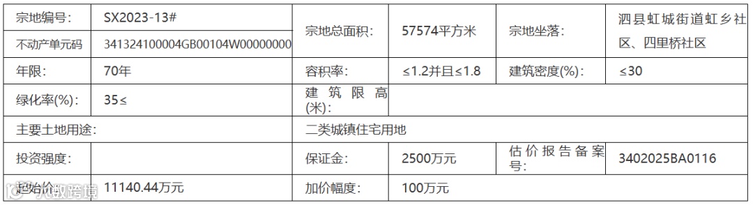 六、本次国有土地使用权拍卖活动定于在2025年07月02日16时00分在 泗县公共资源交易中心 进行。
