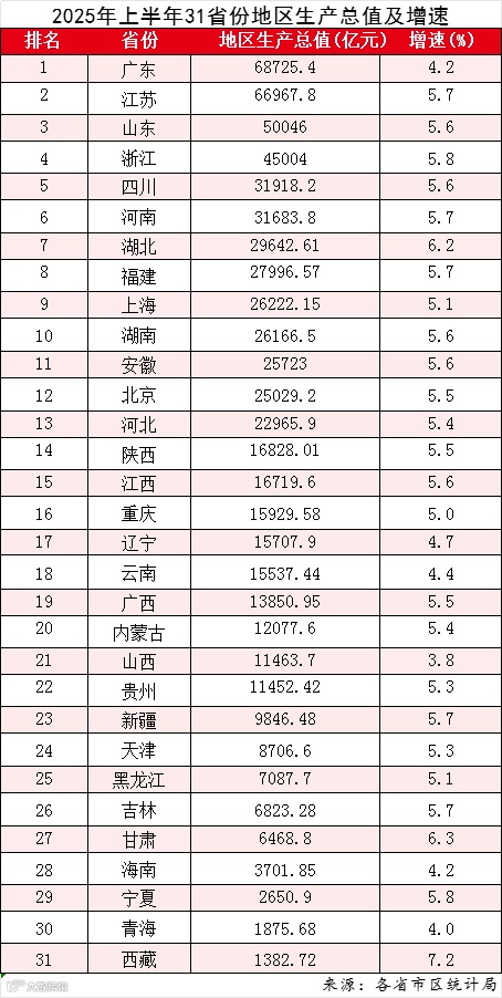 2025年上半年,中国经济在复杂多变的国际环境中稳步前行,而安徽交出了一份令人瞩目的“成绩单”。7月26日,随着海南省数据的发布,全国31省份上半年GDP全部出炉。安徽以5.6%的增速稳居全国中上游,经济总量突破2.57万亿元,继续巩固其长三角“黑马”地位。
