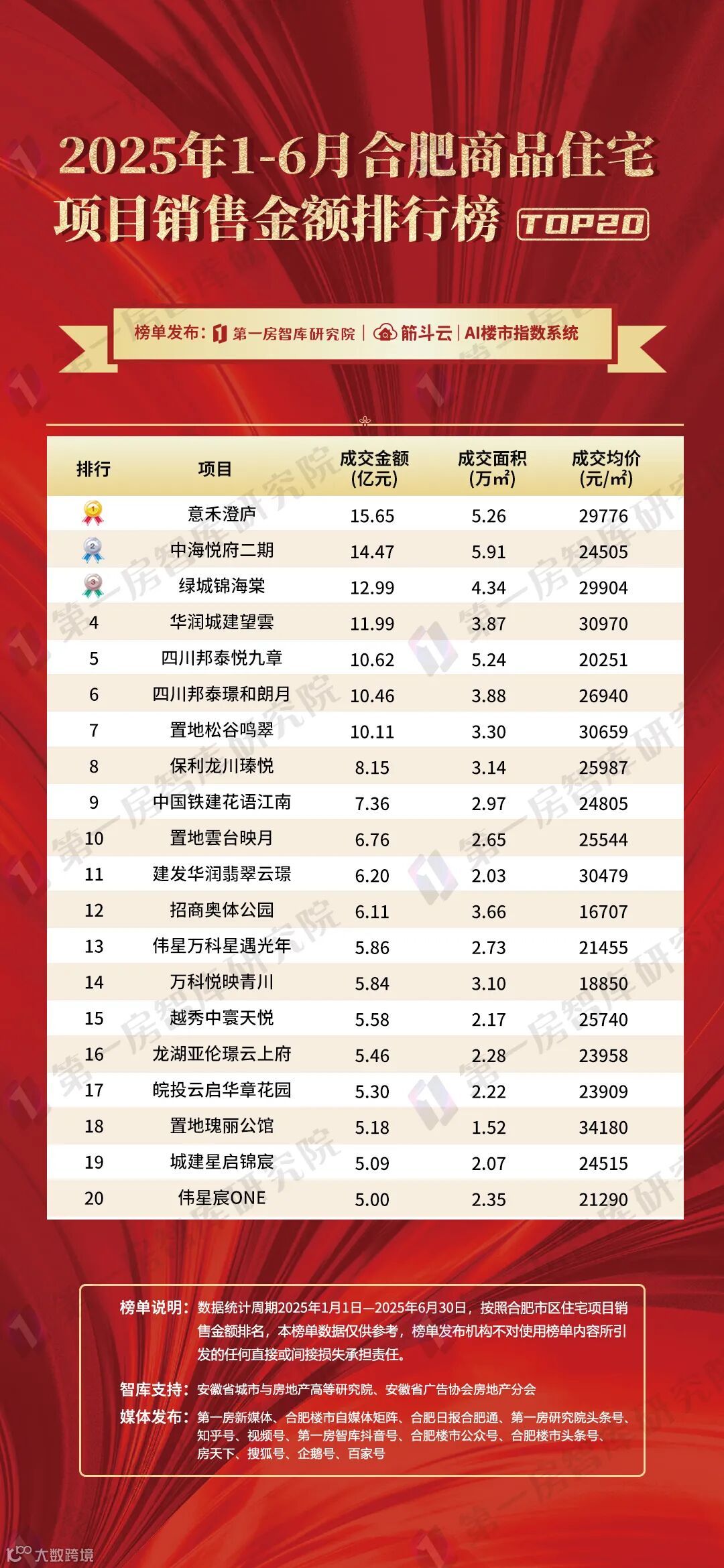 合肥城建以34.05亿元销售额、836套成交稳居榜首,本土国企“压舱石”作用凸显;