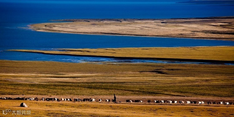 西藏第二大湖——色林错(海拔4500米)。色林错在藏语意为“威光映复的魔鬼湖”,和昂拉仁错一样是鬼湖。在貌似可怕的名字下,看到的是湛蓝湖水,牛羊成群,一片高原牧场的景象。在色林错湖边找地方路餐之后继续出发,会看到许多大大小小的无名湖泊(陛骆错、果根错、班戈错等),这些湖也曾经与色林错是一体。