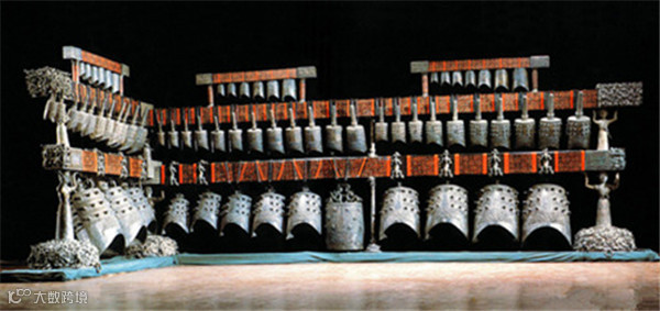 编钟是由六十五件青铜编钟组成的庞大乐器,其音域跨五个半八度,十二个半音齐备。它高超的铸造技术和良好的音乐性能,改写了世界音乐史,被中外专家、学者称之为“稀世珍宝”。