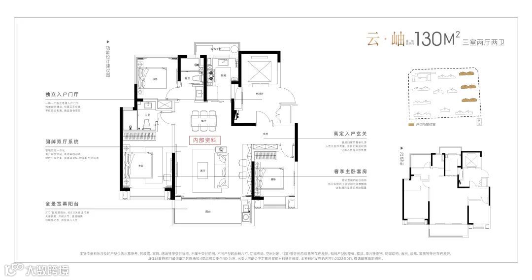 户型上在售的包括约130㎡的瞰景小高层和约143-160㎡的湖境洋房。