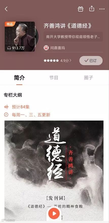 半年时间,数十万道友在《齐善鸿讲<道德经>》中相会,上千万播放量创造了喜马拉雅平台国学课程的奇迹。这其中,既有来自北京、上海的文化达人,也有醉心于国学精粹的海外赤子,2500年前的神作再次回归人们的视线,国学复兴,指日可待。