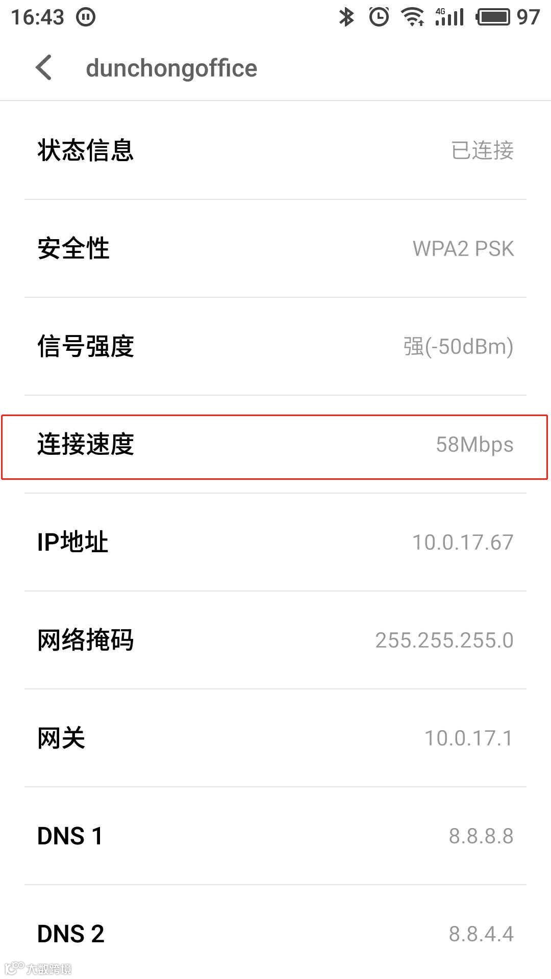 以某安卓手机为例:打开手机设置→无线网络→网络信息,连接速度一栏可看到协商速率;