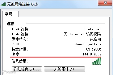 ④ 查看速度一栏,即可查看当前的无线协商速率。