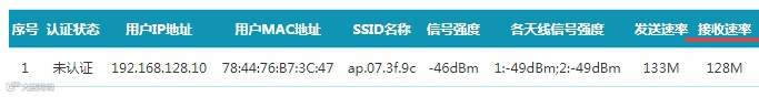 ② 点击设备在线数,在接收速率一栏中可查看到协商速率。