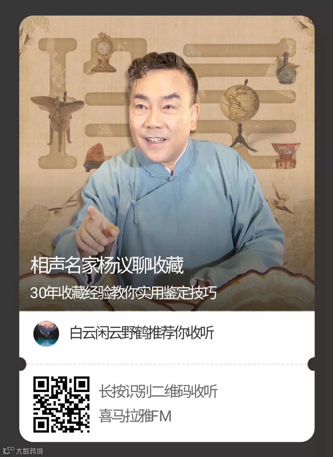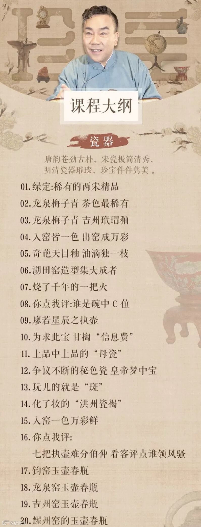 相声名家杨议用30年珍品收藏经验,100件个人藏品录制百期视频课程,教你不为外人知的干货技巧。
