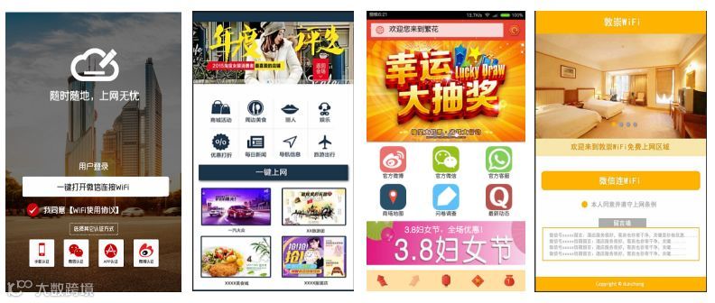 支持短信认证、微信认证等实名认证方式,连接Wifi后强制弹出portal认证页面,点击页面中的微信连WiFI按钮,唤醒微信进行认证或者输入手机号及验证码完成认证