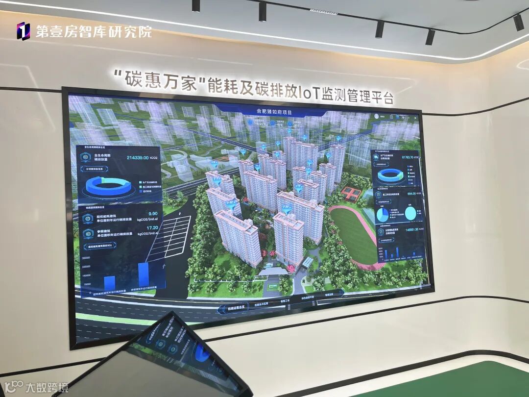 现场,课题组成员以中海臻如府项目为例,为专家组展示了中海地产的“碳惠万家”能耗及碳排放IOT检测管理平台。项目依托中宏低碳建筑科技有限公司自主研发了两个技术产品,一是“智碳空间”碳计算管理平台;二是“数字孪生”能耗监测平台,可便捷高效计算建筑全生命周期碳排放强度,同时依托人机交互可有效降低建筑运行期碳排放。在规划、设计、施工等各个环节均体现了超低能耗建筑的理念和技术创新,通过采用高性能的建筑保温隔热系统、高性能门窗、高效用能设备可再生能源利用等措施,实现了建筑能耗的大幅降低和室内环境的显著改善,为超低能耗建筑的发展提供了宝贵的经验和技术支持。同时,项目通过中宏低碳科技公司开发数字孪生平台监测,碳排放强度相较于常规建筑下降8.0kgce/(m2·a),年减少CO2排放量约101吨。如推广全省,按照2023年安徽省房地产施工面积34993.68万平方米估算,可减少CO2排放量约279万吨,减碳效益明显。同步,通过采取被动式节能及主动式提升用能效率,可减少业主电费约10%。