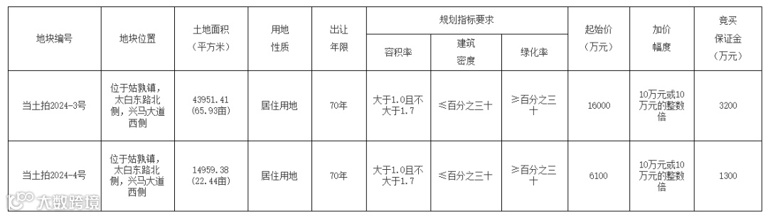 6、竞得人须严格按照各宗地规划条件的规定进行开发建设(“当土拍2024-3号”规划条件编号为DG-2024-037,“当土拍2024-4号”规划条件编号为DG-2024-038)。二宗地用地性质均为居住用地,地块内可建少量商业建筑,且商业建筑的面积不大于地上总建筑面积的百分之十;