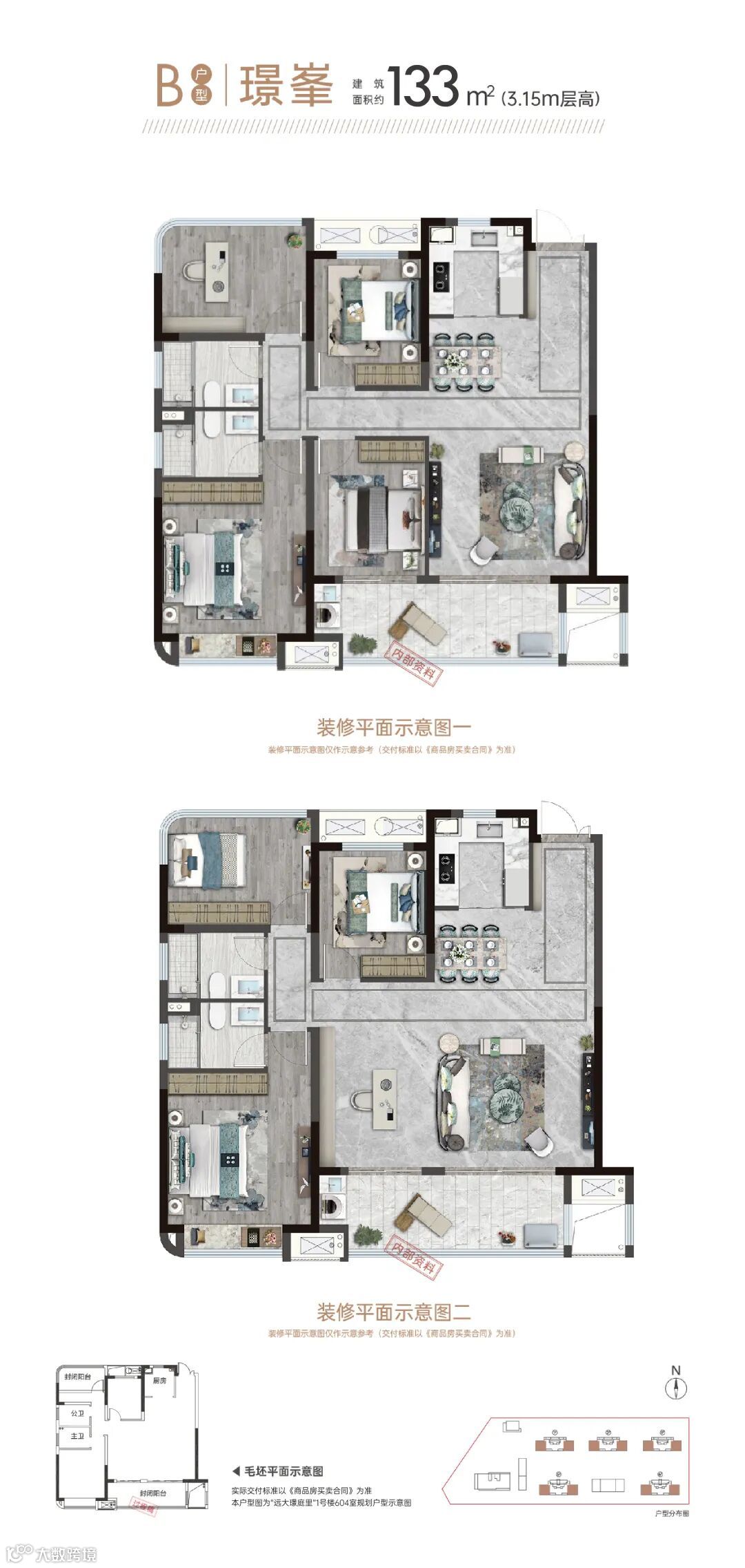 远大璟庭里项目规划建设5栋住宅、1栋商办楼以及3栋配套及地库。5栋住宅为小高层、高层,层数在16-25层,层高3.15m,主力户型面积为111-131㎡,毛坯交付。
