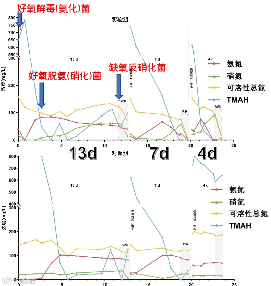 最终在其半导体工厂实际TMAH污水中测试,投菌1轮,换水3轮。