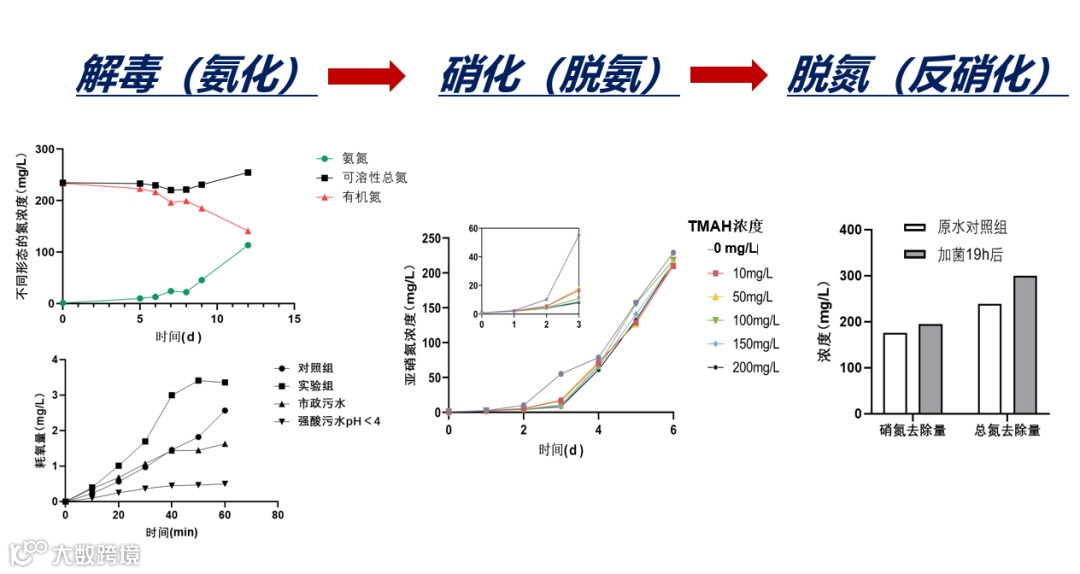 开发了针对TMAH废水的系列菌剂:好氧解毒(氨化)菌剂、脱氨(硝化)菌剂和脱氮(反硝化)菌剂。