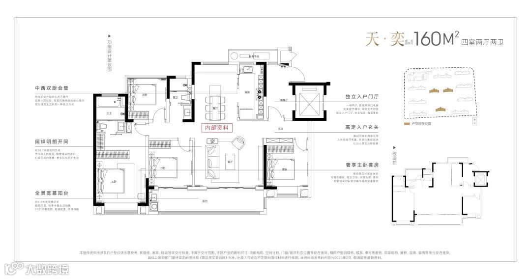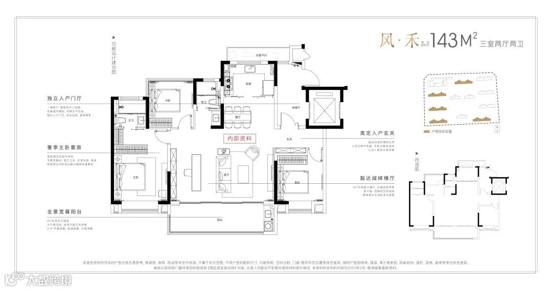 户型上在售的包括约130㎡的瞰景小高层和约143-160㎡的湖境洋房。