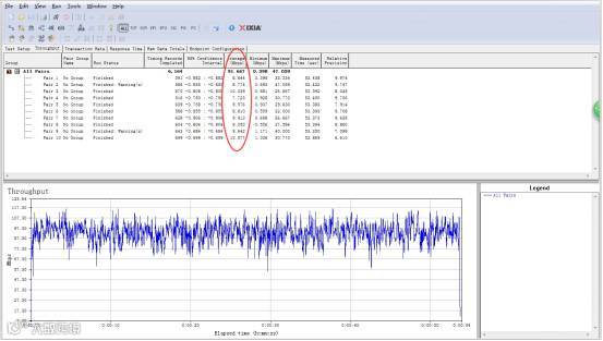 紧接着进行下行模拟10条用户流的测试,不用繁琐的调测,无线吞吐量也达到了91Mbps,已经达到的运营商级的设备性能标准,对于企业网的用户来说,这样的设备下载性能已经绰绰有余。