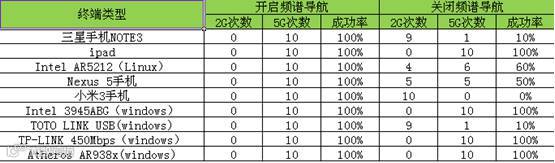 频谱导航效果明显,开启功能后,用户100%导航到5G频段,AP完全起到主导作用。