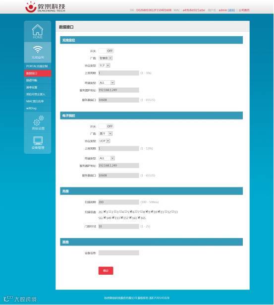 在数据接口功能中,主要还分有两个子功能,即无线定位以及电子围栏功能。通过开启相应的功能,能够让服务器获得更加准确的客户端信息。
