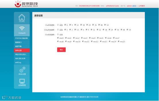 敦崇WA722M-E无线AP速率设置界面