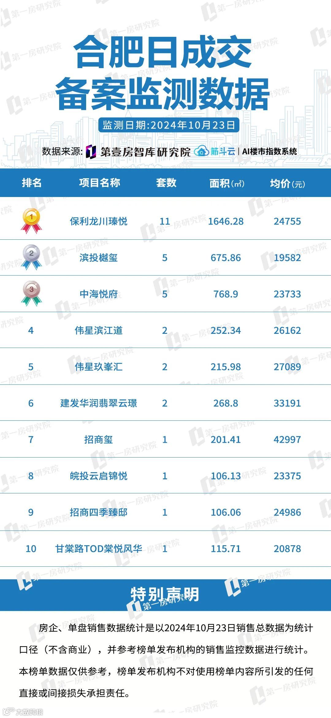 10月23日合肥市区备案住宅类商品房39套,备案均价24786元/㎡