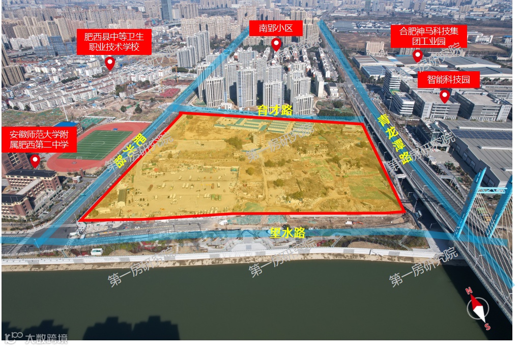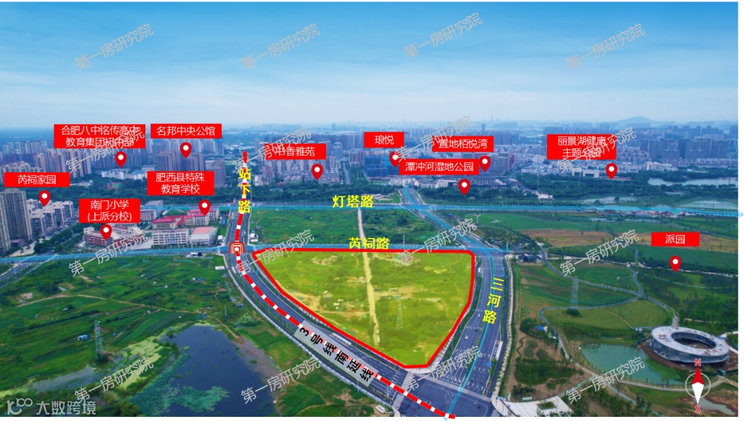 该地块位于肥西泛经开片区锦绣大道与蓬莱路交口西北侧,周边路网较为成熟,紧邻地铁3号线和轨道交通9号线(规划),地理位置优越,交通便利,周边有翡翠医院、安徽医科大学第二附属医院等医疗配套,合肥市莲花小学、合肥经开实验学校以及合肥师范学院、安徽建筑大学、三联学院等多所高等教育,人文气息较为浓厚,地块紧邻合肥经开区,享受经开区资源配套,正大广场、百乐门广场、金大地时代天街等商业配套,可满足日常所需,地块处于南艳湖与翡翠湖之间,生态环境优良,居住属性高。