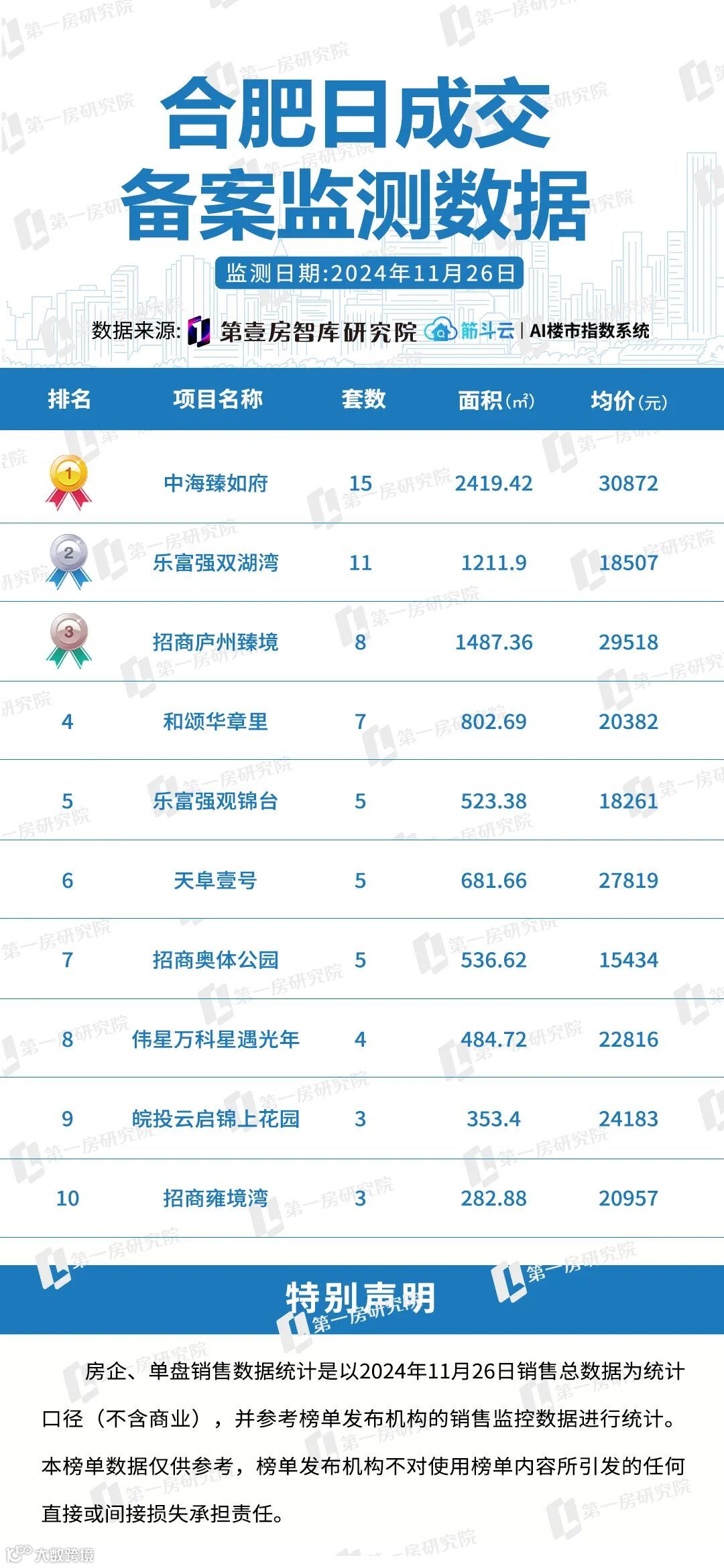 11月26日合肥市区备案住宅类商品房95套,备案均价25379元/㎡