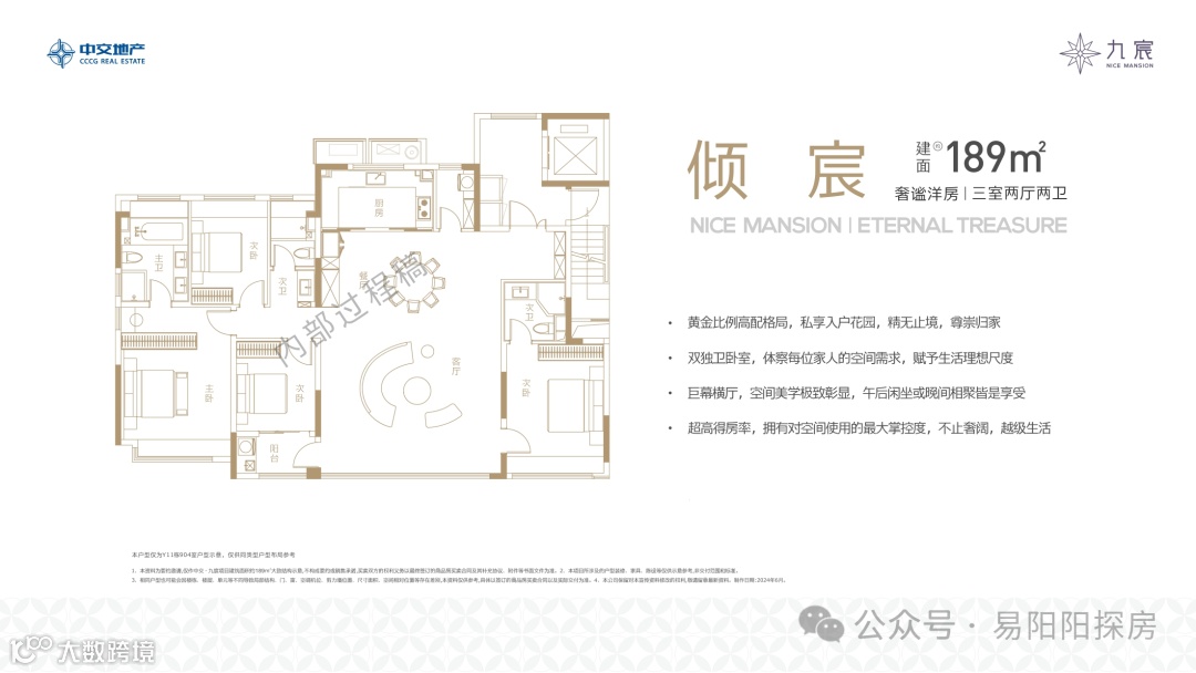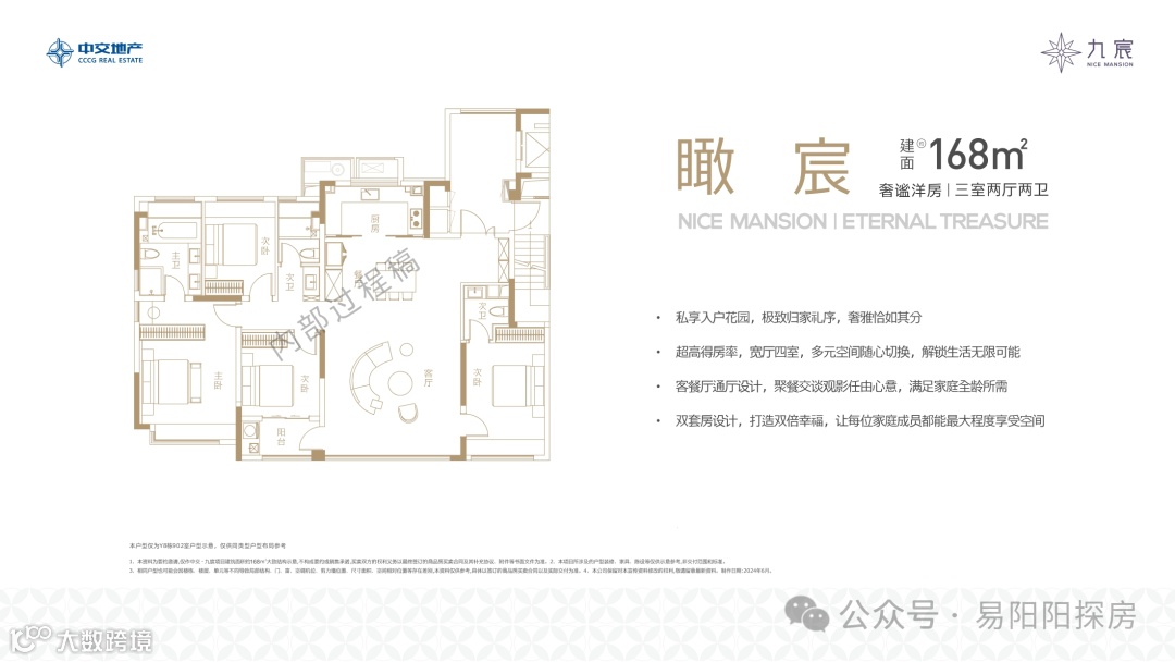 产品丰富,洋房、小高层、高层兼具,建面约108-189㎡。高层户型各具特色,泊宸灵动餐厨、超强收纳;悦宸大气宽厅,全明通透;浮宸私享入户,可变四房;观宸一梯一户,宽景横厅;寰宸双套房设计,尽显尊崇。洋房户型同样出彩,雅宸超高得房率、阔境横厅;瞰宸多元空间随心切换;倾宸巨幕横厅,双独卫套房,全方位满足城市中坚对品质生活的追求。