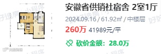 近期成交的一套房源,61.92m²,260万,成交价4.1989万/m²。