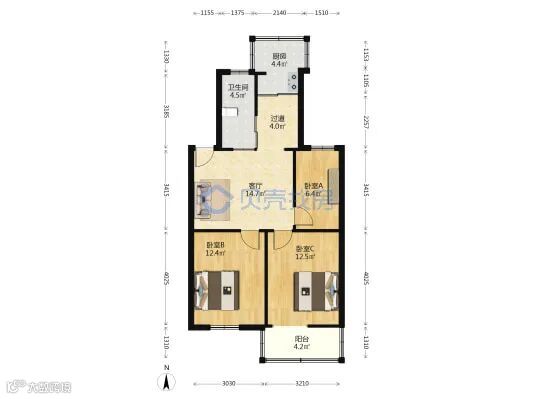 首先该户型是三室一厅一卫,70多平做了三室,并且卧室C还有个阳台。最大的特点就是将小户型做了三室,空间利用率高。