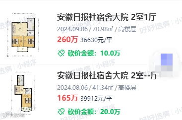 可能看出来这些小区的价差也是很大,虽然都在一环内。环城路以内的多为政府机关的宿舍居多,拥有顶级名校资源的市委机关宿舍、安徽日报社宿舍大院等小区,挂牌价飙到4.2万+/㎡,区域内大多数房源在2.3-3万/㎡左右。但是在一环内环湖外的二手房价格就普遍在1.5-2万/m²,这些多为一些老小区。