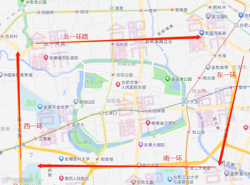 合肥一环由东一环、西一环、南一环和北一环共同组成,属于合肥真正的老城区。