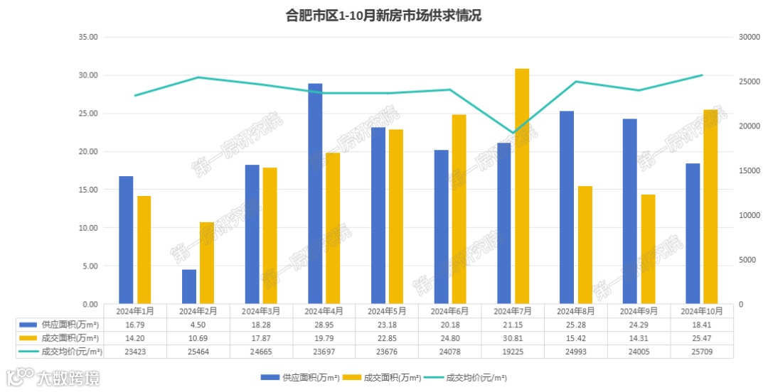 从合肥市场来看,根据第一房研究院AI楼市指数系统统计数据显示,从新房月度成交量上来看,10月新房成交量环比上涨78%,成交均价2.57万/㎡,价格环比上涨7%,确实量价涨了。