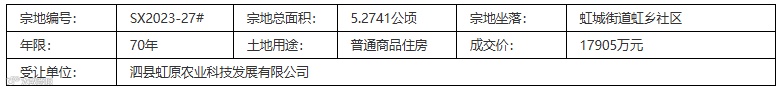 泗县虹原农业科技发展竞得1宗涉宅用地,成交价1.79亿元