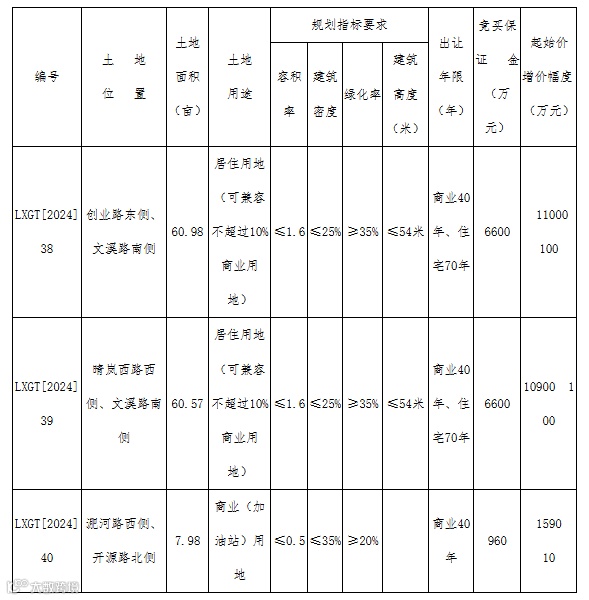 (三)LXGT[2024]38号、LXGT[2024]39号地块竞得人如为同一家公司,各项技术经济指标允许进行综合平衡。