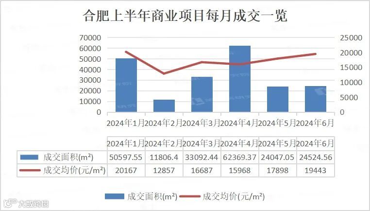 根据第一房研究院AI 楼市指数系统数据统计,今年1-6月份,合肥商业成交面积约20.64万㎡,成交均价18229元/㎡。