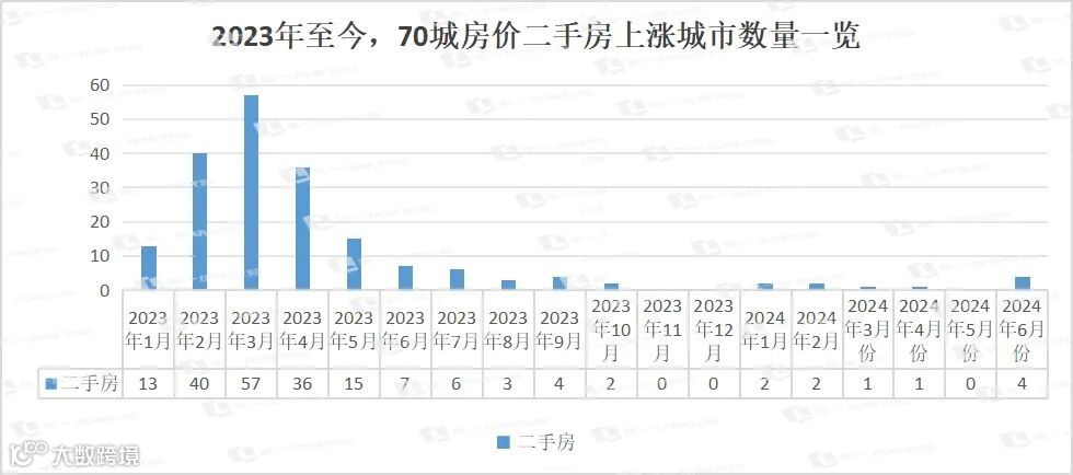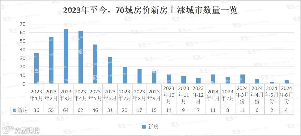 今年6月份,新房4城环比上涨,64城环比下跌;相比上个月的2城环比上涨,68城环比下跌,情况略微有所好转。