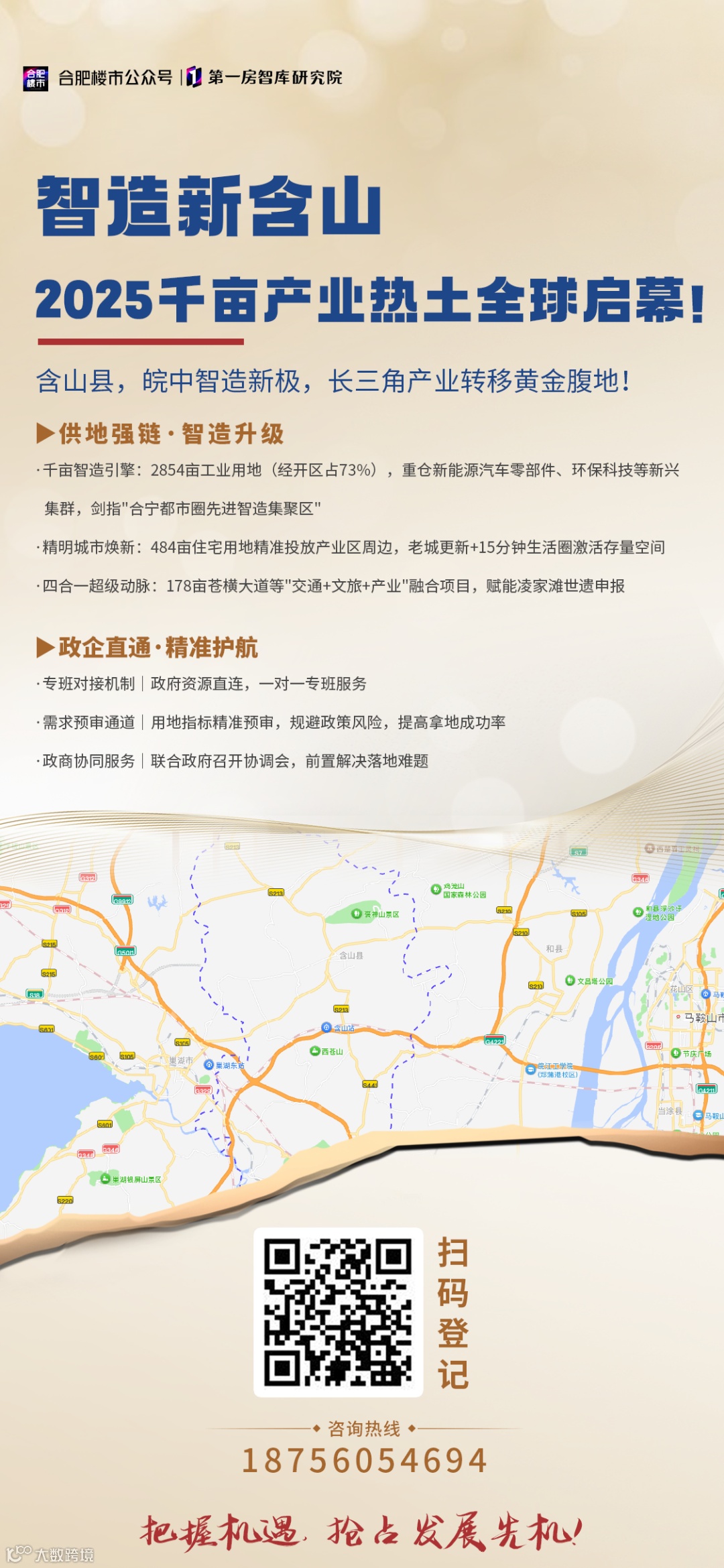 66%的工业用地占比,在县级土地供应中实属罕见。这不仅是数字,更是向新能源汽车、智能制造等新兴产业All in的宣言。含山深谙"无工不富"的道理,在长三角产业转移的窗口期押注制造业,眼光毒辣。