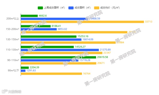 从成交面积段来看,本周环比200m²以上和110-130m²的面积段上涨趋势明显,合肥改善户型占比在逐渐增大。
