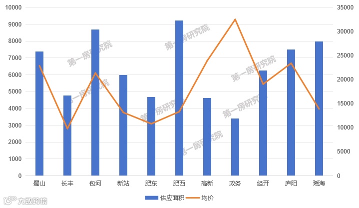 分区县来看,肥西县挂牌面积最高,政务区的挂牌均价最高。