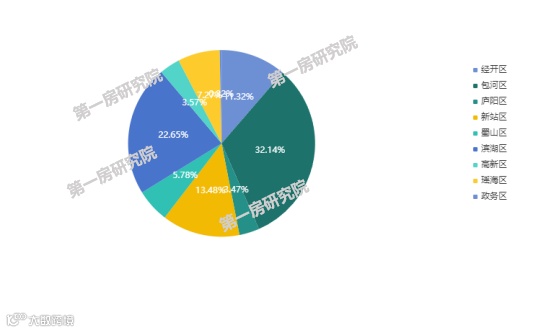 分区域来看,包河区成交占比32.14%,九区排名第一,滨湖区占比22.65%,九区排名第二,新站区占比13.48%,九区排名第三。