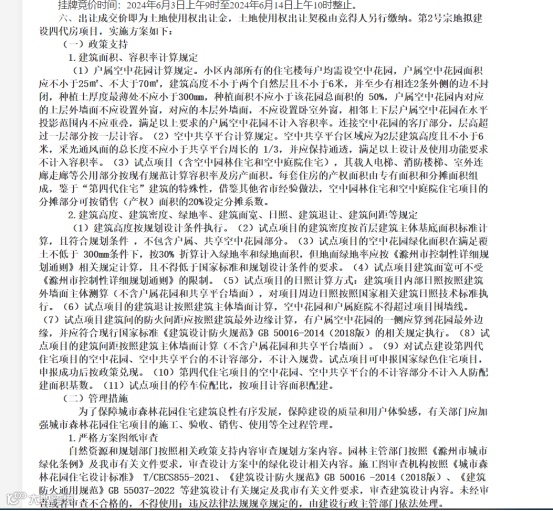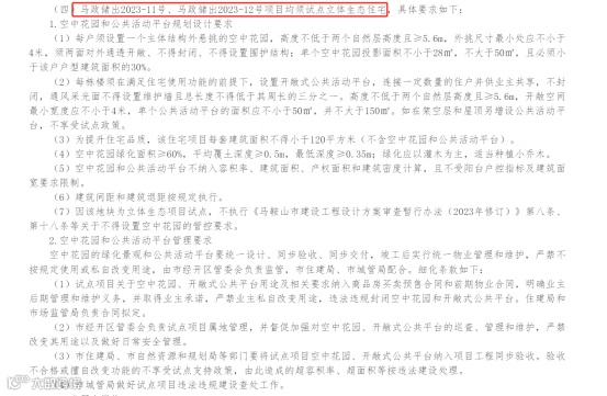 马鞍山是安徽省第二个推出试点项目的城市,去年10月马鞍山挂出马政储出2023-11号和马政储出2023-12号两宗地块,其中就明确须试点立体生态住宅,而且对第四代住宅有详细细则。