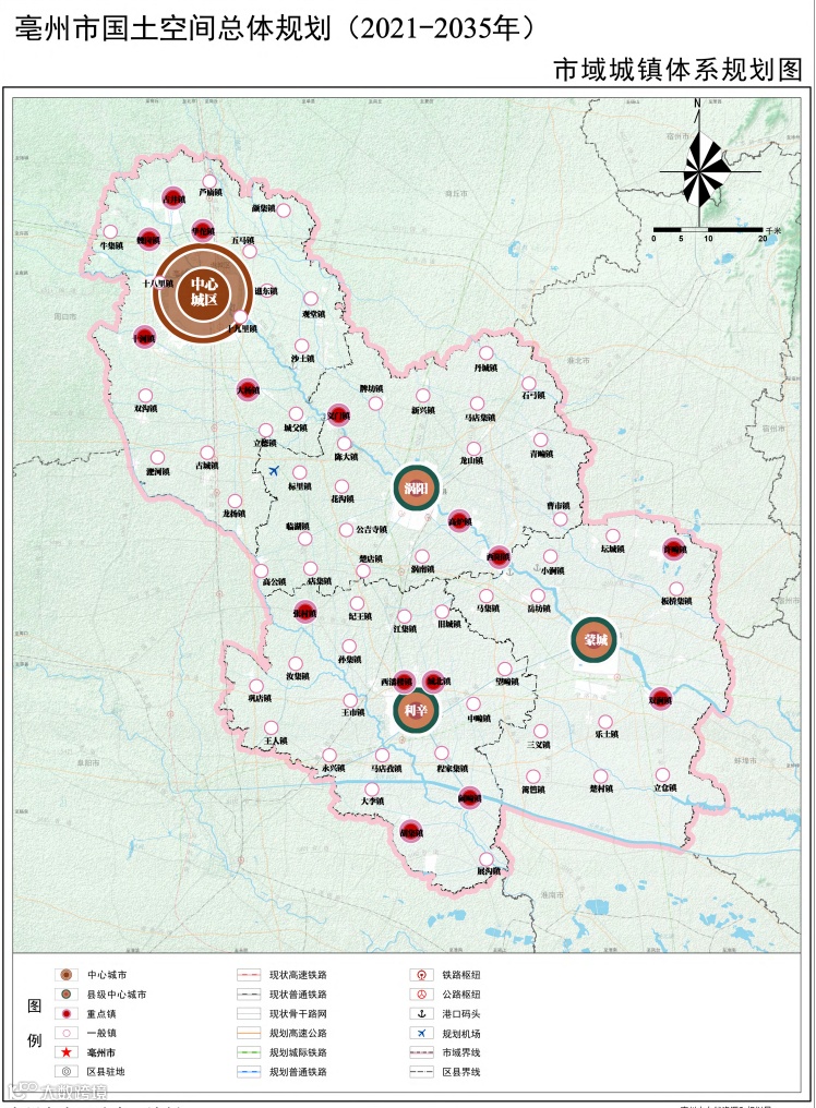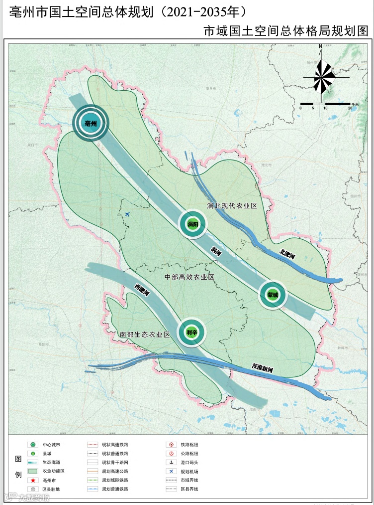 城镇空间:以中心城区为核心,联动涡阳、蒙城、利辛三大副中心,形成“一主三副”的集约化城镇体系,严格控制城镇开发边界扩展倍数。