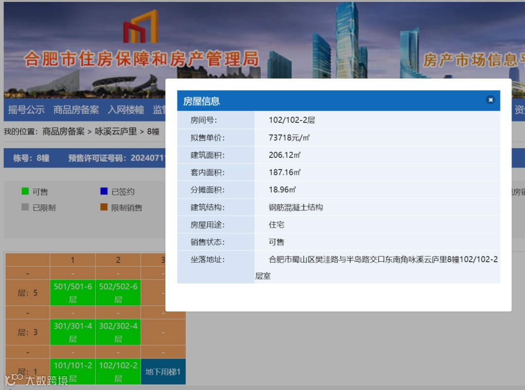 首开湖景视野最好的8号楼,下叠102/102-2层备案价高达73718元/平,建筑面积206.12㎡,总价15194754.16。